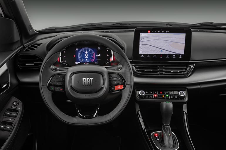 O Fastback é possivelmente o Fiat mais sofisticado já produzido no Brasil. O acabamento interno é caprichado, com bancos que podem ser revestidos em couro. O visual da cabine é agradável, apesar de painel e revestimentos serem todos de plástico rígido – o lado popular da marca persiste aqui. O lado mais tecnológico fica por conta do quadro de instrumentos 100% digital e personalizável, de 7 polegadas nas duas versões mais caras.
