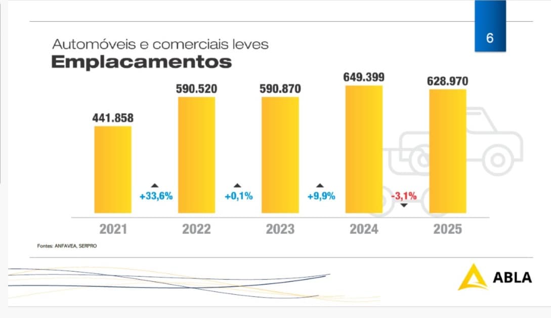 “É um ano bastante complicado, com Copa do Mundo, muitos feriados, eleição e, agora, com cenário um pouco mais conturbado diante da guerra no Irã. Por isto pretendemos manter o patamar de 620 mil veículos”, disse Paulo Miguel Júnior, vice-presidente da Abla, durante entrevista coletiva à imprensa na quarta-feira, 18.