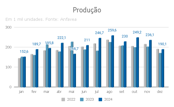 Os dados foram divulgados pela Anfavea na terça-feira, 14. De acordo com Eduardo Freitas, vice-presidente da entidade, destacaram-se os modelos urbanos, que registraram aumento de 41,3% na fabricação, e os rodoviários, com alta de 5%.