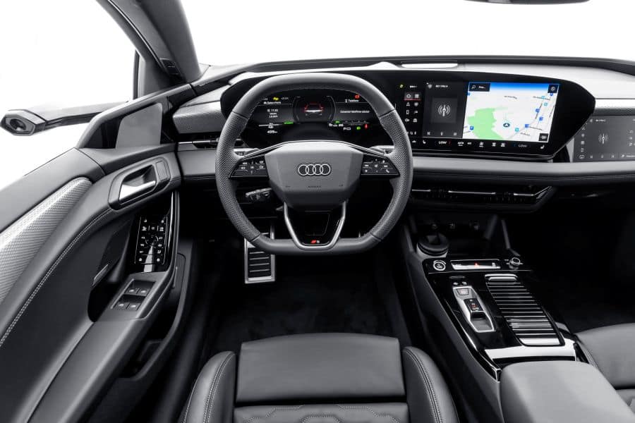 O modelo, segundo a Audi, oferece o que há de mais moderno em suas tecnologias. As câmaras que substituem os espelhos retrovisores em uma tela instalada na lateral do painel são opcionais por R$ 20 mil. Com elas instaladas a parte interna do A6 e-tron oferece nada menos do que cinco telas: o painel de instrumentos de 11,9 polegadas, a central multimídia de 14,5 polegadas e o display para o passageiro de 10,9 polegadas.